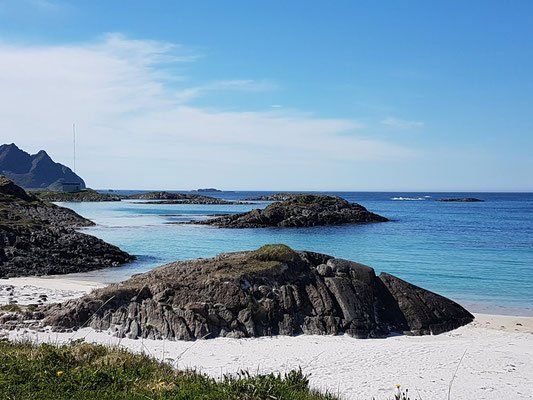09.06.2017 Heute stehen wir schon um 07:30 Uhr auf, denn um 08:45 Uhr müssen wir am Büro sein, da gibt es eine Einweisung zur Safari. Frühstück hatte ich schon am Abend zuvor vorbereitet ich muss also nur noch Kaffee kochen und dann kann es losgehen. Wir dürfen direkt vorm Büro im Schatten mit dem Womo stehen, somit ist gesichert, dass es Dalton nicht zu warm wird. Gott sei Dank! Bei der Einweisung gibt es auch viel Wissen um die Wale. Es ist recht interessant. Wir gehen etwas früher raus, weil wir noch mal mit dem Hund Gassi gehen. Hoffentlich geht alles gut, denn er muss jetzt mal drei Stunden allein im Auto bleiben. Wir machen die Dachluken auf und sorgen für ausreichend Frischluftzufuhr. natürlich steht auch genug Wasser da. Dann geht es los Richtung Hafen auf das Boot. Das Boot ist voll, aber es ist trotzdem genug Platz für alle. Pünktlich um 11:00 Uhr geht es los... und ich kann euch sagen: alles , was über die Schaukelei auf dem Bott geschrieben wurde, ist wahr! Es wurde im Hafenbecken darauf hingewiesen , nicht die Handys zu benutzen, auch nicht die Fotos andauernd anzusehen. Immer auf den Horizont zu schauen und an der frischen Luft zu bleiben. Ich dachte so.. "mein Gott, was ein Gedöns, ist doch gar nicht so schlimm, aber sobald wir aus dem Hafenbecken raus waren, ging es los. Aber wie... seitliches Schaukeln und nach vorne und zurück.. halle luja.. aber ich musste irgendwie lachen, ich fand es lustig, Gott sei Dank hat es mir tatsächlich nichts ausgemacht.. aber vielen anderen Gästen und ich habe sogar meine Reisetabletten verteilt.Einem Mädchen ging es echt schlecht. Es wurden reichlich Tüten verteilt. Ich glaube bei mir war es die Aufregung auf die Wale, die mich abgelenkt hat :-) nach einer kurzen Zeit ging es los.. da kamen die ersten Wale. Grindswale, auch Delphine, Walmutter mit ihrem Kalb und dann auch ein Pottwal! man sieht ja leider nicht so viel vom großen Pottwal. Er liegt auf dem Wasser um Sauerstoff zu tanken, ab und an kommt eine Fontäne und dann nach ca 15 bis 20 min taucht er dann zum jagen ab und man kann das berühmte Schwanzflossenfoto machen. Leider war er nicht so ganz nahe.. aber es war überwältigend. Ich fand es grandios, diese großen Tiere zu erleben und das in der Natur. Ein tolles Erlebnis. In meinem nächsten Leben werde ich sowieso Meeresbiologin:-) es ist faszinierend. nach 2 Stunden geht es auf den Rückweg, für viele eine Erleichterung, ich wäre noch gern geblieben. Es gibt noch eine Gemüsebrühe mit Brot, Tee und Kaffee. Phu das muss alles erst mal verarbeitet werden. Nun war ich also hier .. ich hatte schon so viel darüber gelesen...ich freue mich, dass es mir und Michael gut ging und unser Hund war auch ganz tiefenentspannt. Wir fuhren nochmal zum CP zurück, Michael wollte duschen und danach entschieden wir uns noch einen Tag nach Bleik zu fahren. Das ist der Nachbarort von Andenes und hat einen schönen Campingplatz direkt am Wasser und in den Dünen mit einem schönen Bergpanorama. Auf dem Weg dahin passiert, für mich, was ganz schreckliches. Ein kleines Vögelchen sitzt am Strassenrand und fliegt doch tatsächlich vor uns los, um auf die andere Strassenseite zu kommen, das gegenüberliegende Auto hat es voll erwischt! ich heule 2 Stunden! kriege das Bild nicht aus dem Kopf. Warum musste es denn grade dann losfliegen??? Es tat mir so leid. Ich konnte nur hoffen, dass es wenigstens gleich tot war. Ich war untröstlich. Ich kann so etwas überhaupt nicht haben. Als wir unseren Stellplatz bezogen hatten , haben wir es uns gemütlich gemacht, haben relaxt und ich habe geschlafen, ich war total fertig von der frischen Luft, von den Erlebnissen und vom heulen! Später gab es Biohähnchenbrust mit Gemüse und Reis. Bis um 23:00 Uhr haben wir mit unseren Campingstühlen am Strand gesessen und der Sonne zugesehen. Mitternacht sind wir noch einmal ans Wasser und haben Aufnahmen gemacht von der letzten Mitternachtssonne am Meer für diese Tour. ich bin sehr melancholisch .. aber auch sehr dankbar, dass alles geklappt hat und es auch meiner Mutter im Heim gut geht und ich diese wundervolle Reise machen durfte! Norwegen wird immer mein Favorit sein. ich liebe einfach den Norden und es ist so traumhaft schön hier. Für dieses mal sind die Lofoten/ Vesteralen zu Ende.. :-(