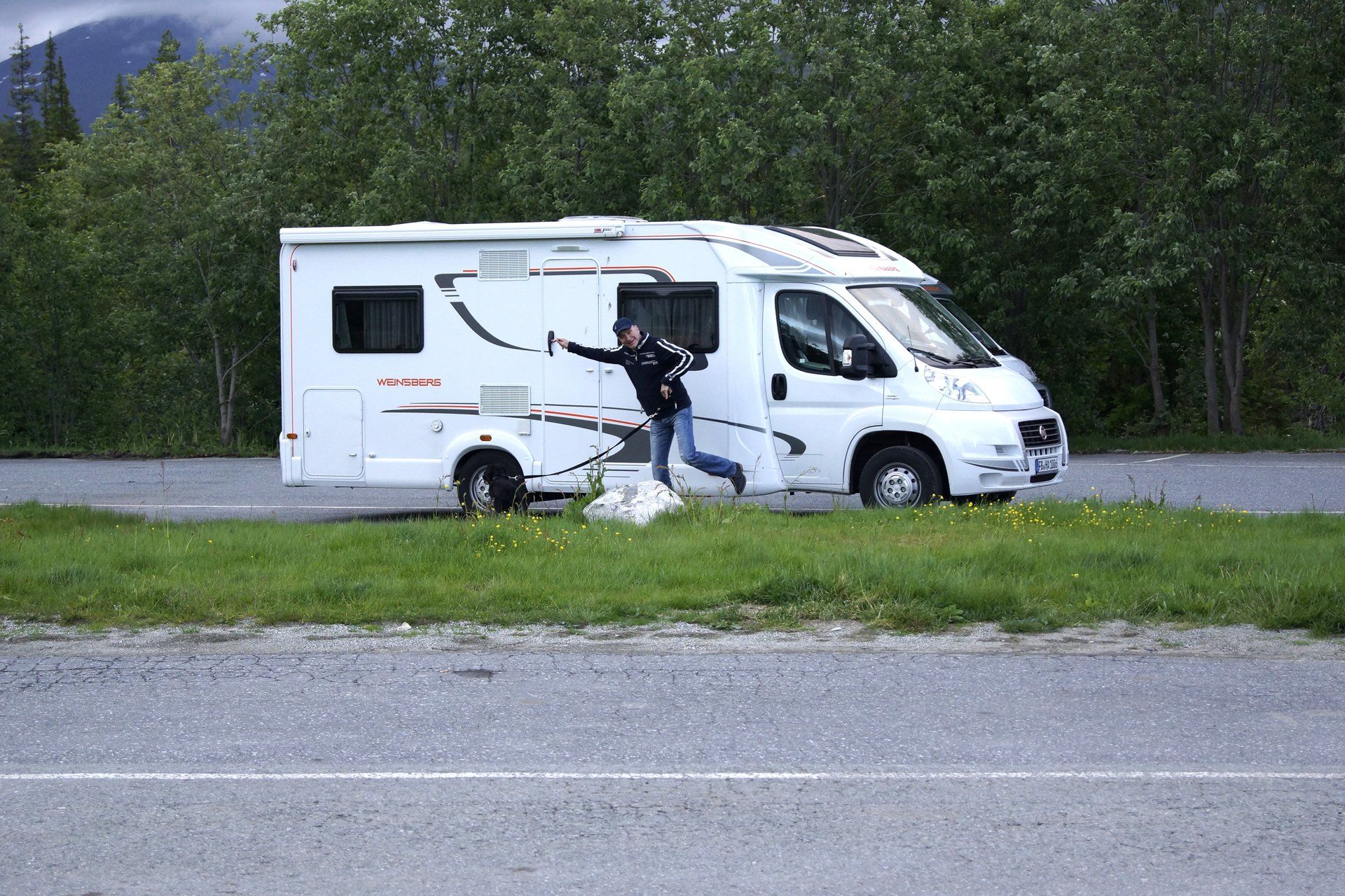 Ein sehr steiniger und nicht gut begehbarer Weg führt zum Gletscher, oder sagen wir mehrere Wege, die nicht einmal ausgeschildert sind. Wir fragten uns durch und zwischendurch wollte ich aufhören, denn es war mit Hund nicht lustig. Ein Par sagte uns es ist nicht mehr weit und nun kurz vorm Ziel wollte ich dann nicht aufgeben.. Der Gletscher ist beeindruckend, aber wir standen vielleicht 5 Minuten dort, dann mussten wir wider zurück, denn das letzte Boot fuhr ja in einer guten Stunde.. oh man.. Man kann es auch gut auf den Bildern sehen, wirklich lachen kann ich nicht!:-) zu guter letzt verliefen wir uns auch noch und wenn uns ein Paar nicht vom Boot aus gesehen hätte, wäre das Boot weg gewesen und wir hätten wahrscheinlich gar nicht mehr gewusst wo wir sind. So lotsten sie uns runter und Gott sei Dank konnten wir dann mit dem Boot zurück fahren. Nochmal 8 km laufen, das wäre eine Katastrophe gewesen. Am Platz angekomen, stärkten wir uns etwas und dann ging es doch noch einmal weiter.. über den Polarkreis (wieder für mich sehr beeindruckend und auch bewegend) bis zum Saltdal CP. Eigentlich hätten wir gerne irgendwo in der Prärie übernachtet, weil wir echt durch waren, aber wir mussten entsorgen und deshalb sind wir bis zum CP weitergefahren. Eine lange Tour heute.. Michael war nach dem Abendessen so fertig, dass er im Sitzen eingeschlafen ist. .