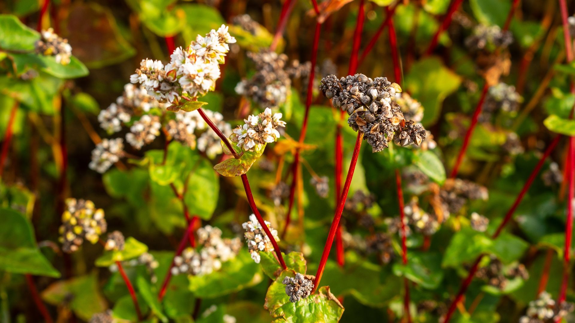 Am Bäcker gibt es ein Buchweizenfeld. Das erste Mal in meinem Leben sehe ich Buchweizen. So sieht er also aus. Er war in frühen Jahren das Getreide der Armen, heute hingegen ist der Buchweizen, auf Grund seiner guten Bekömmlichkeit, sehr beliebt. Er enthält kein Gluten und ist reich an Ballaststoffen. Außerdem enthält er viele Mineralstoffe wie Magnesium, Kalzium und Eisen, sowie Vitamine. Das muss ich natürlich bildlich festhalten.