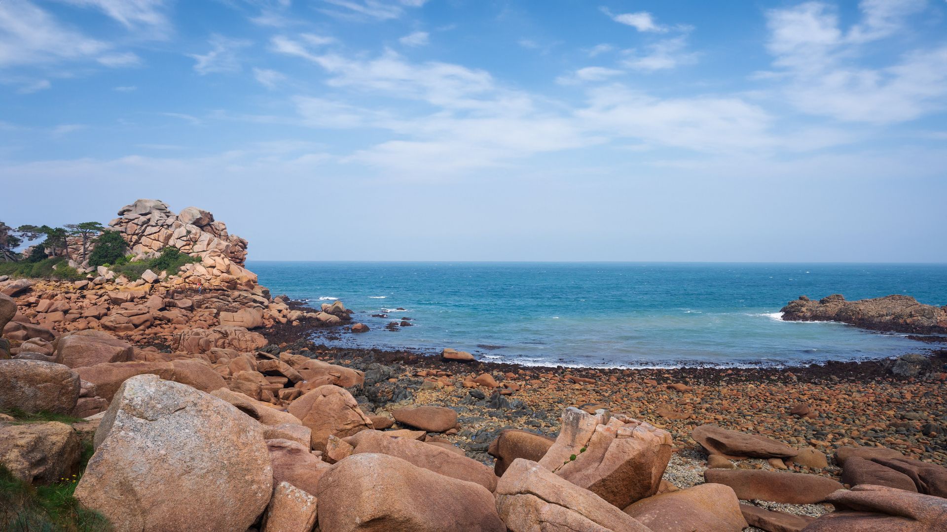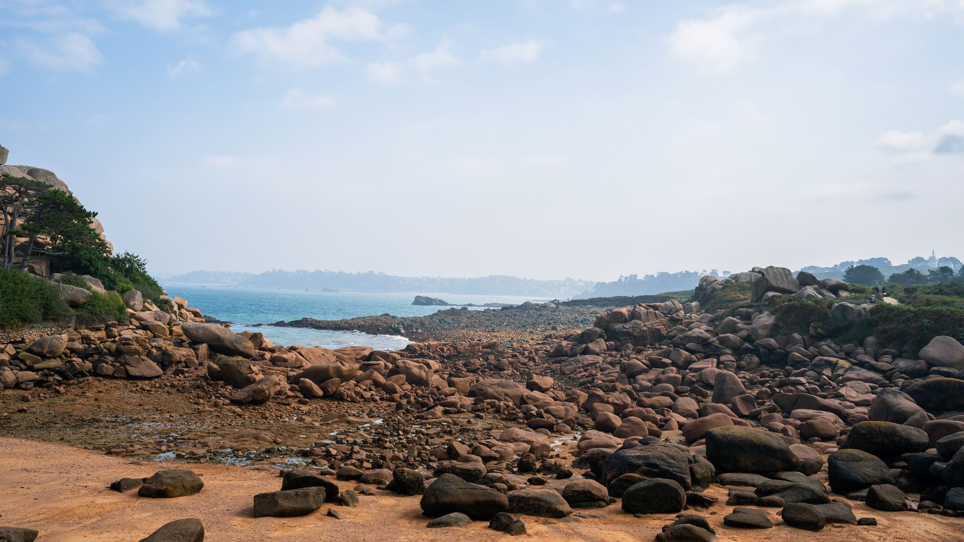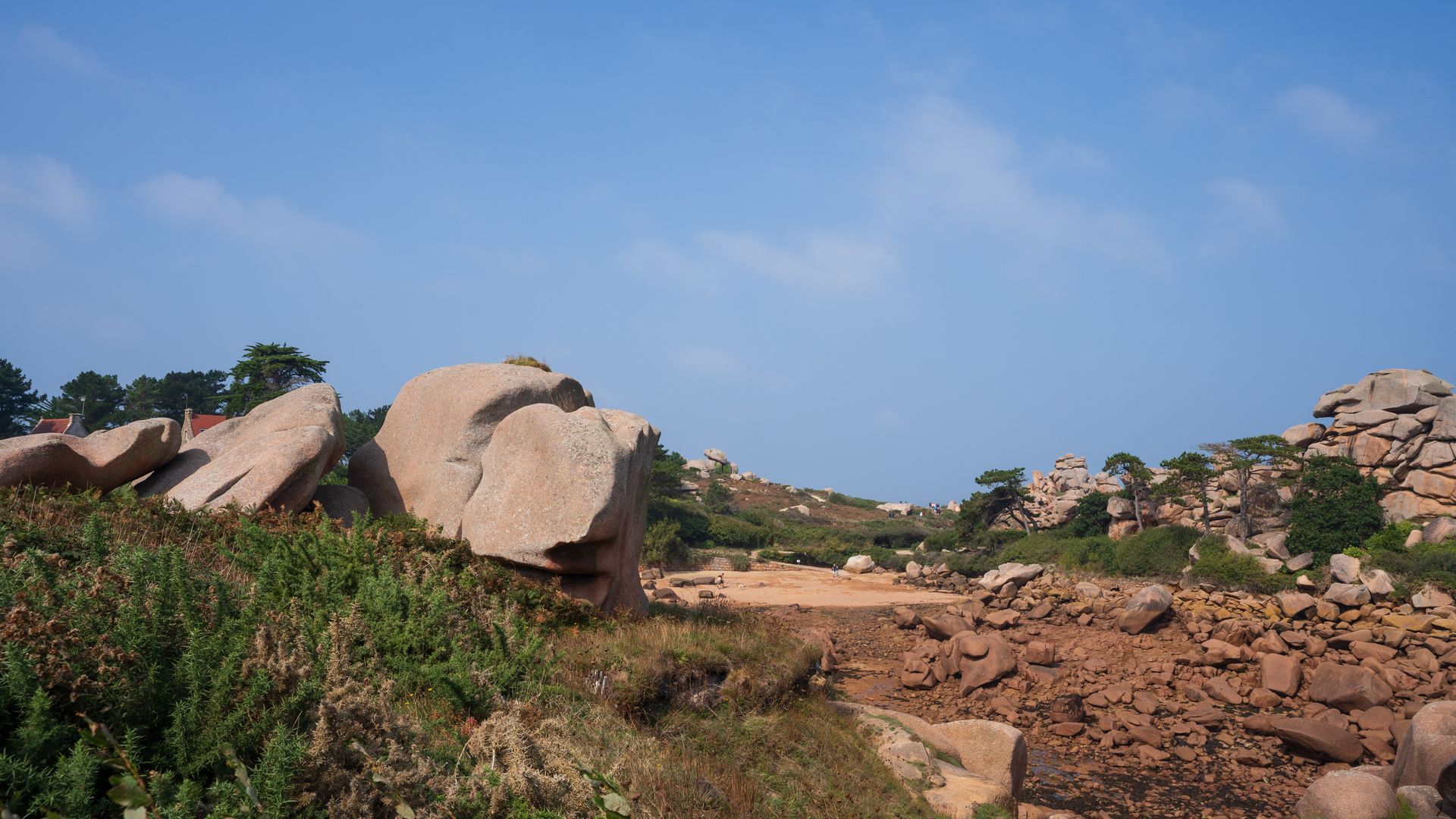 Nun geht es weiter zur Côte de Granit de Rose. Diese rosafarbenen Felsen möchte ich unbedingt sehen. Vom Parkplatz in Ploumanac'h läuft man ca. 15 min bis zu den Felsen. Hier führt ein Weg an der Küste entlang, der gute von Besuchern genutzt wird. Es ist trotz etwas diesigem Wetter, gut was los. Die rosa Farbe des Gesteins verdankt der Granit seinem Gehalt an Hämatit und Alkalifeldspat. Die Wanderung lohnt sich in jedem Fall, es ist eine beeindruckende Landschaft. Wenn man etwas Phantasie walten lässt, kann man Figuren in den Steinformationen erkennen. Auch auf jeden Fall ein Muss in der Bretagne.