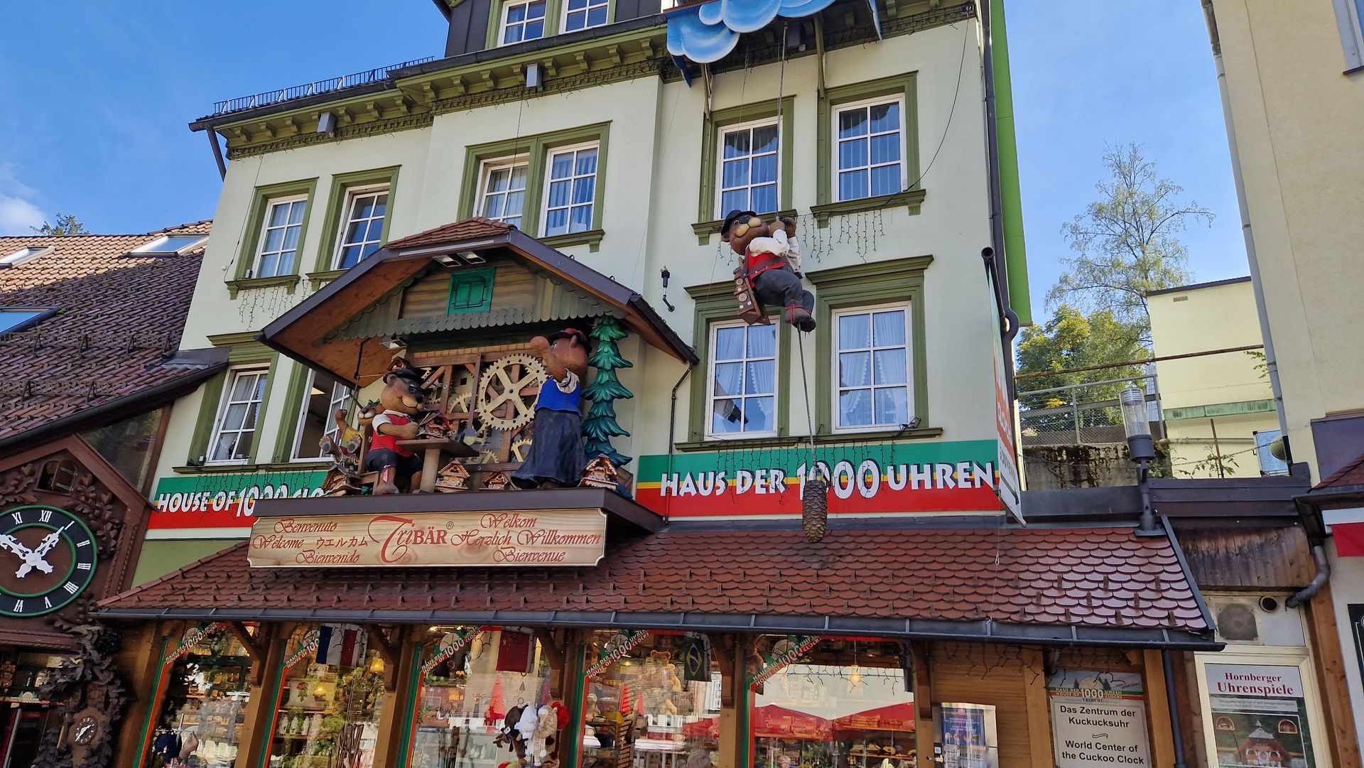 mit Sonnenschein aufgewacht geht es nun heute zuerst zur Ersten weltgrößten Kuckucksuhr. Gestern standen wir ja an der jetzigen größten Kuckucksuhr und heute besuchen wir die erste, die gebaut wurde. Der Uhrmacher Josef Dold hatte die Idee eine Kuckucksuhr so groß wie ein Schwarzwaldhaus zu bauen. Sie wurde in nur zwei Jahren erschaffen. Im Inneren kann man das große Uhrwerk bestaunen und der Kuckuck zeigt sich aller 30 min.
