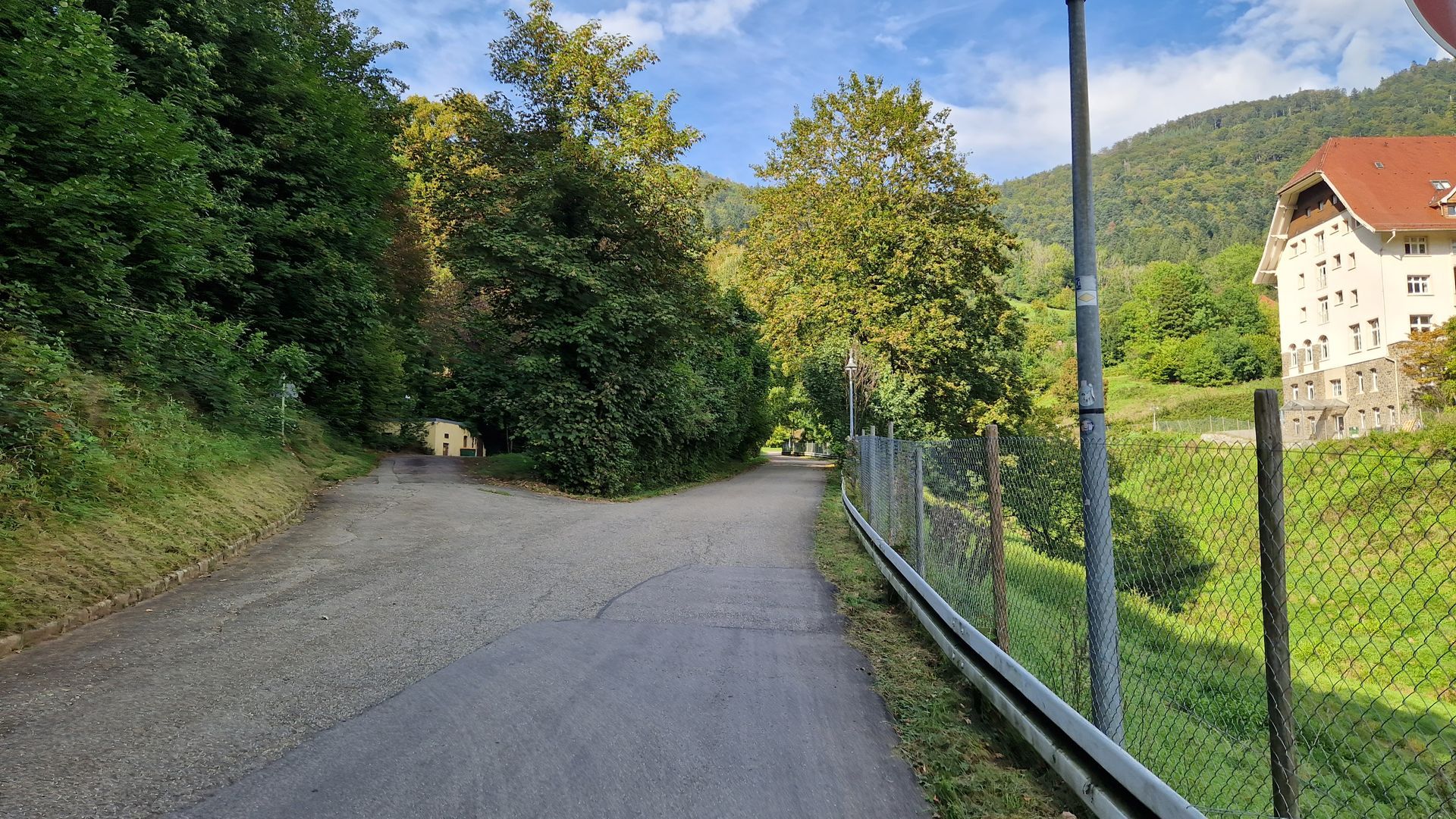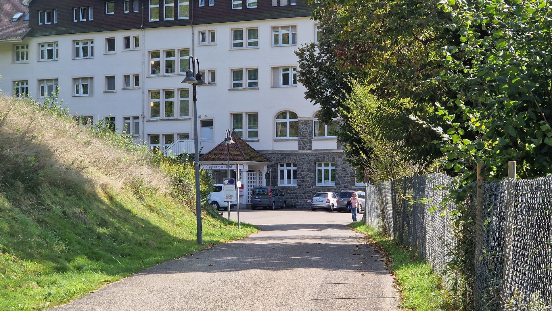 dann geht es wieder zurück und als ich fast wieder unten bin entdecke ich einen Weg der um die Klinik herum führen könnte. Man darf ja das Areal nicht betreten und auch nicht in die Klinik , da sie heute wieder in Betrieb ist, ich würde aber sooo gerne noch die Klinik von hinten sehen. Also laufe ich noch mal los, das ganze Stück noch einmal von der anderen Seite und dann? Sehe ich NICHTS! es sind Bäume und Sträucher davor, so dass man nicht mal einen kleinen Blick erhaschen kann...😪das ganze also umsonst. Fix und fertig komme ich am Parkplatz an...