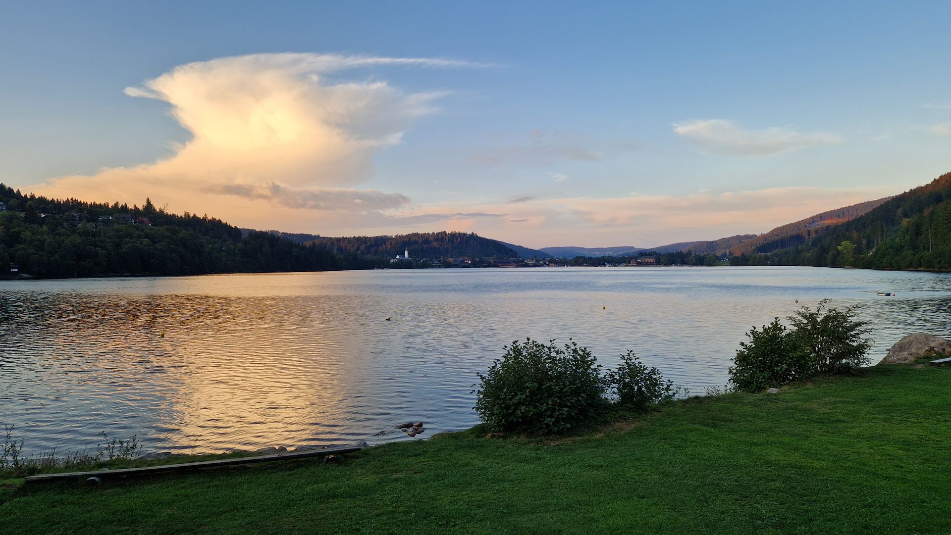 Das letzte Stück geht dann relativ schnell bis zum Titisee. Dort haben wir auf dem Campingplatz Sandbank großes Glück einen Stellplatz zu erhaschen. Es ist brechend voll! Abends gehen wir in dem kleinen Lokal, welches sich direkt am See befindet, essen. Das Essen war in Ordnung und ein Glas Wein gab es heute auch.