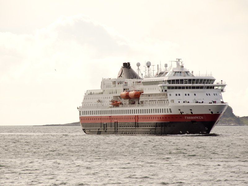 Es gab auch eine Toilette, aber diese haben wir nicht besichtigt, da wir eh unser eigene benutzen. Am nächsten Morgen ging es weiter in Richtung Alesund. Es regnete sehr und wurde gar nicht hell. Von weitem entdeckten wir den Bodalsbreen und bogen ab, um uns diesen von der Nähe zu betrachten. Schon gewaltig so eine Gletscherzunge! Schade, dass es dies nicht mehr lange geben wird. Richtung Alesund wurde das Wetter immer besser und es kam sogar ab und an die Sonne raus. Auf der Fähre blies ordentlich der Wind! In Alesund angekommen, sind wir erst einmal zum Hafen und durften gleich mal die Finnmarken beim einlaufen beobachten. Das war schon echt cool, ganz schön groß diese Hurtigrutenschiffe. In der Nähe vom Hafen gibt es einen Stellplatz direkt am Meer. Sauber , mit Ver und Entsorgung und es gibt auch sanitäre Anlagen. Michael war duschen und es war wohl sauber und ordentlich. Ich dusche im Womo.