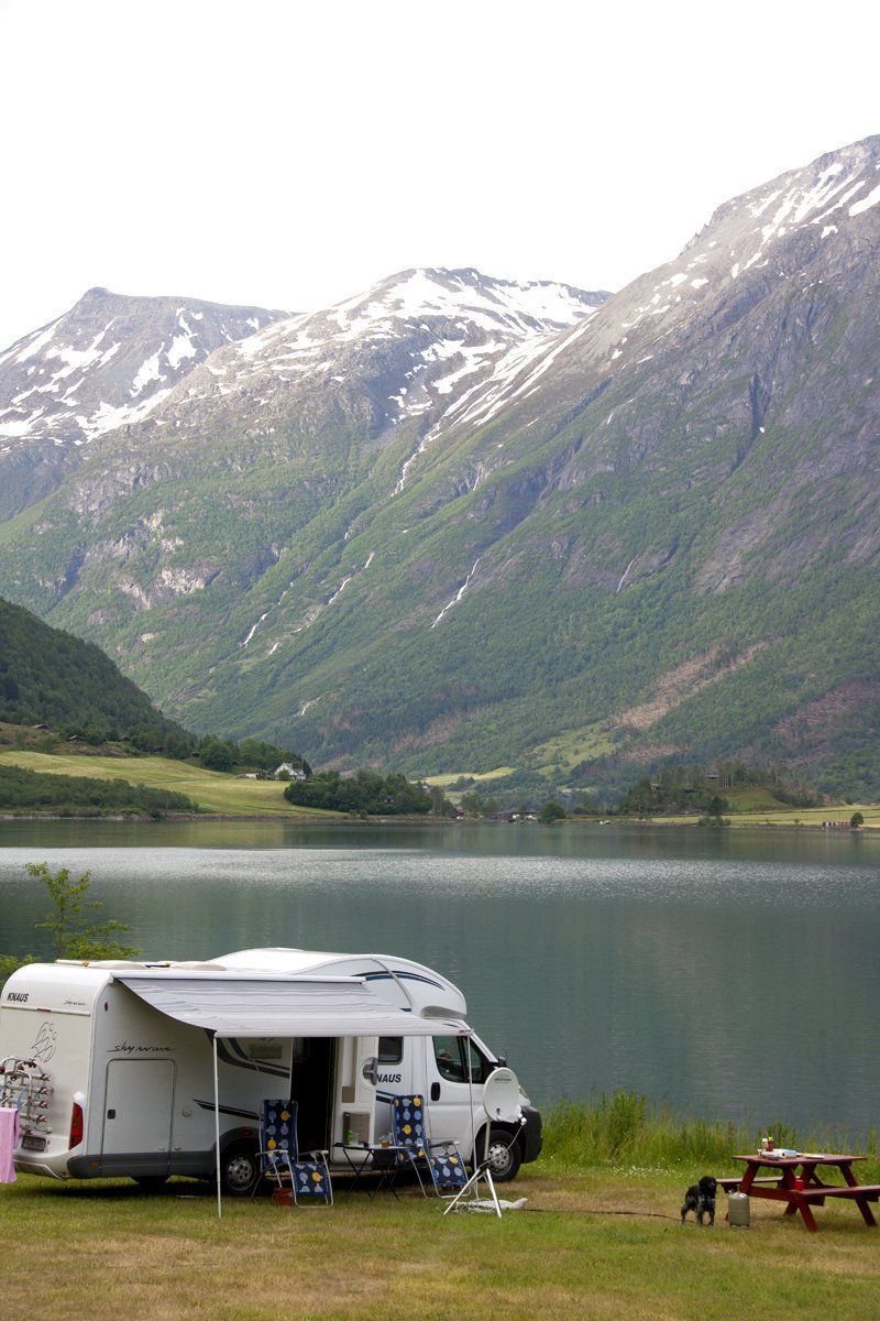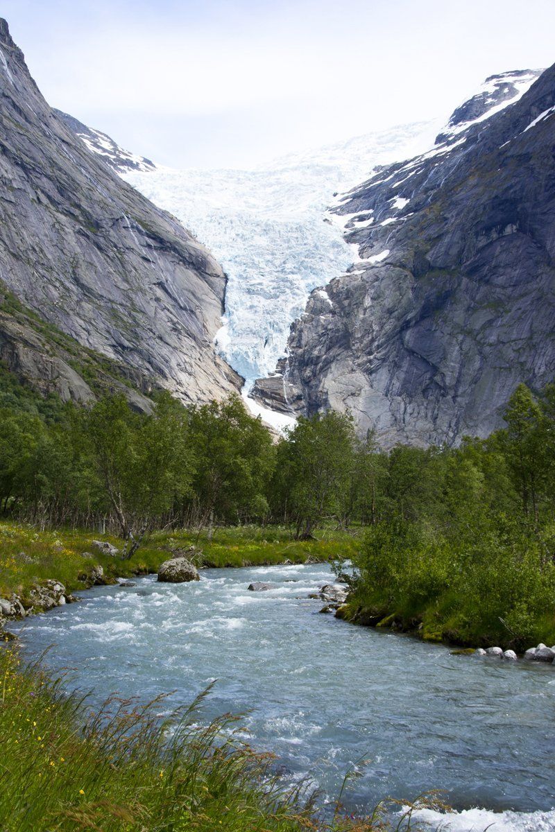 Heute stehen wir etwas später auf, gehen duschen und frühstücken draußen und dann geht es weiter zum Briksdalbreen. Die Straße dorthin ist traumhaft schön und wir sehen mehrere schöne Campingplätze. Einer fällt uns besonders auf, wir merken uns den Namen und wollen nach unserer Gletscherzungen- Tour, dorthin zurück fahren und bleiben.