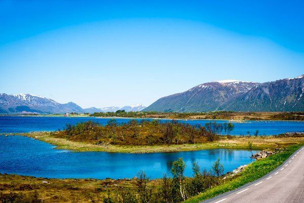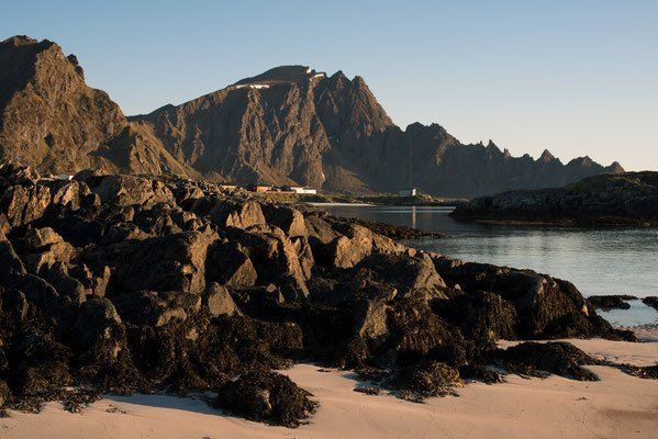 Dann fahren wir wieder bis Sortland zurück um dann nach Andenes abzubiegen.Uns bieten sich auf der Tour wunderschöne Landschaften, ich hätte nie gedacht, dass die Vesteralen so schön sind! Es erinnert sehr an das Fjordland in Mittelnorwegen. Wir sind beide total angenehm überrascht. Ja na klar bei dem Wetter ist alles nochmal so schön.. was haben wir ein Glück! Und wir sehen nochmal Elche!!! In Andenes angekommen fahren wir zum Walsafari - Büro und checken für den nächsten Morgen ein. Ich bin aufgeregt! Hoffentlich wird mir nicht schlecht auf dem Boot, man hat da ja schon die dollsten Sachen gehört bzw gelesen :-) aber die See ist ruhig, kein Wind. Erst haben wir überlegt, ob wir noch an dem selben Tag mit dem nächsten Boot mitfahren, aber es stellte sich heraus, dass es schon überfüllt war, was auch gut war, denn wir hätten nur einen Stellplatz in der Sonne bekommen und das wäre wahrscheinlich für den Hund zu warm geworden. Also fahren wir, nach einer kurzen Stadtbesichtigung und Einkauf, zum Ortseingang zurück, wo sich der Campingplatz befindet. Achja.. am Walsafari Büro gibt es ein Haus, indem keiner mehr wohnt, außer Möwen. Es hat uns voll an den Film " Die Vögel" erinnert. Leider kam es auf dem Foto nicht so rüber, aber es war wirklich interessant.
