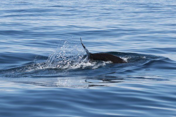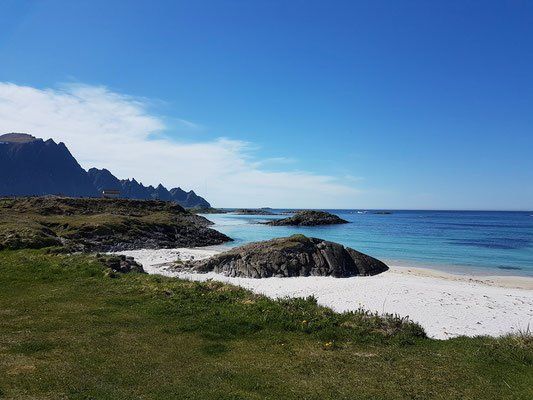 09.06.2017 Heute stehen wir schon um 07:30 Uhr auf, denn um 08:45 Uhr müssen wir am Büro sein, da gibt es eine Einweisung zur Safari. Frühstück hatte ich schon am Abend zuvor vorbereitet ich muss also nur noch Kaffee kochen und dann kann es losgehen. Wir dürfen direkt vorm Büro im Schatten mit dem Womo stehen, somit ist gesichert, dass es Dalton nicht zu warm wird. Gott sei Dank! Bei der Einweisung gibt es auch viel Wissen um die Wale. Es ist recht interessant. Wir gehen etwas früher raus, weil wir noch mal mit dem Hund Gassi gehen. Hoffentlich geht alles gut, denn er muss jetzt mal drei Stunden allein im Auto bleiben. Wir machen die Dachluken auf und sorgen für ausreichend Frischluftzufuhr. natürlich steht auch genug Wasser da. Dann geht es los Richtung Hafen auf das Boot. Das Boot ist voll, aber es ist trotzdem genug Platz für alle. Pünktlich um 11:00 Uhr geht es los... und ich kann euch sagen: alles , was über die Schaukelei auf dem Bott geschrieben wurde, ist wahr! Es wurde im Hafenbecken darauf hingewiesen , nicht die Handys zu benutzen, auch nicht die Fotos andauernd anzusehen. Immer auf den Horizont zu schauen und an der frischen Luft zu bleiben. Ich dachte so.. "mein Gott, was ein Gedöns, ist doch gar nicht so schlimm, aber sobald wir aus dem Hafenbecken raus waren, ging es los. Aber wie... seitliches Schaukeln und nach vorne und zurück.. halle luja.. aber ich musste irgendwie lachen, ich fand es lustig, Gott sei Dank hat es mir tatsächlich nichts ausgemacht.. aber vielen anderen Gästen und ich habe sogar meine Reisetabletten verteilt.Einem Mädchen ging es echt schlecht. Es wurden reichlich Tüten verteilt. Ich glaube bei mir war es die Aufregung auf die Wale, die mich abgelenkt hat :-) nach einer kurzen Zeit ging es los.. da kamen die ersten Wale. Grindswale, auch Delphine, Walmutter mit ihrem Kalb und dann auch ein Pottwal! man sieht ja leider nicht so viel vom großen Pottwal. Er liegt auf dem Wasser um Sauerstoff zu tanken, ab und an kommt eine Fontäne und dann nach ca 15 bis 20 min taucht er dann zum jagen ab und man kann das berühmte Schwanzflossenfoto machen. Leider war er nicht so ganz nahe.. aber es war überwältigend. Ich fand es grandios, diese großen Tiere zu erleben und das in der Natur. Ein tolles Erlebnis. In meinem nächsten Leben werde ich sowieso Meeresbiologin:-) es ist faszinierend. nach 2 Stunden geht es auf den Rückweg, für viele eine Erleichterung, ich wäre noch gern geblieben. Es gibt noch eine Gemüsebrühe mit Brot, Tee und Kaffee. Phu das muss alles erst mal verarbeitet werden. Nun war ich also hier .. ich hatte schon so viel darüber gelesen...ich freue mich, dass es mir und Michael gut ging und unser Hund war auch ganz tiefenentspannt. Wir fuhren nochmal zum CP zurück, Michael wollte duschen und danach entschieden wir uns noch einen Tag nach Bleik zu fahren. Das ist der Nachbarort von Andenes und hat einen schönen Campingplatz direkt am Wasser und in den Dünen mit einem schönen Bergpanorama. Auf dem Weg dahin passiert, für mich, was ganz schreckliches. Ein kleines Vögelchen sitzt am Strassenrand und fliegt doch tatsächlich vor uns los, um auf die andere Strassenseite zu kommen, das gegenüberliegende Auto hat es voll erwischt! ich heule 2 Stunden! kriege das Bild nicht aus dem Kopf. Warum musste es denn grade dann losfliegen??? Es tat mir so leid. Ich konnte nur hoffen, dass es wenigstens gleich tot war. Ich war untröstlich. Ich kann so etwas überhaupt nicht haben. Als wir unseren Stellplatz bezogen hatten , haben wir es uns gemütlich gemacht, haben relaxt und ich habe geschlafen, ich war total fertig von der frischen Luft, von den Erlebnissen und vom heulen! Später gab es Biohähnchenbrust mit Gemüse und Reis. Bis um 23:00 Uhr haben wir mit unseren Campingstühlen am Strand gesessen und der Sonne zugesehen. Mitternacht sind wir noch einmal ans Wasser und haben Aufnahmen gemacht von der letzten Mitternachtssonne am Meer für diese Tour. ich bin sehr melancholisch .. aber auch sehr dankbar, dass alles geklappt hat und es auch meiner Mutter im Heim gut geht und ich diese wundervolle Reise machen durfte! Norwegen wird immer mein Favorit sein. ich liebe einfach den Norden und es ist so traumhaft schön hier. Für dieses mal sind die Lofoten/ Vesteralen zu Ende.. :-(