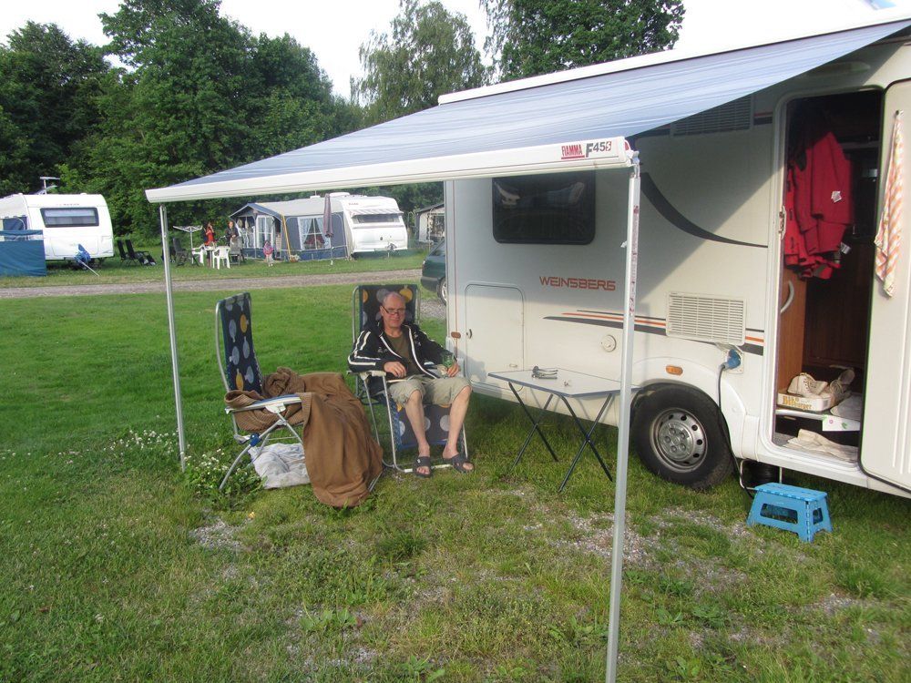 Danach ging es weiter Richtung Heimat. Wir haben noch eine Zwischenstation beim Katherinenholm Camping gemacht. Ein schöner CP, aber ziemlich teuer. Abends war es zu kühl zum Draussensitzen, wir haben es uns im Womo gemütlich gemacht und es gab im Fernsehen einen Krimi. Zuvor hatte ich Lachs mit Gemüse gekocht und einenleckeren Weißwein gab es auch, die Stimmung war wieder ok. Nun überlegten wir uns was wir mit den Resttagen anfangen?