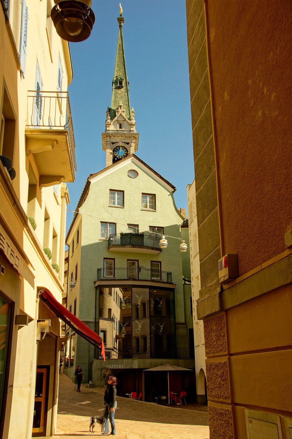 Naja über die Geschäfte müssen wir nicht sprechen. Es ist ein wirklich netter Ort, aber auch nichts außergewöhnliches. Wir gönnen uns ein Eis! Jeder zwei Bällchen 12 CHF... aber es sind wirklich große Bällchen:-)