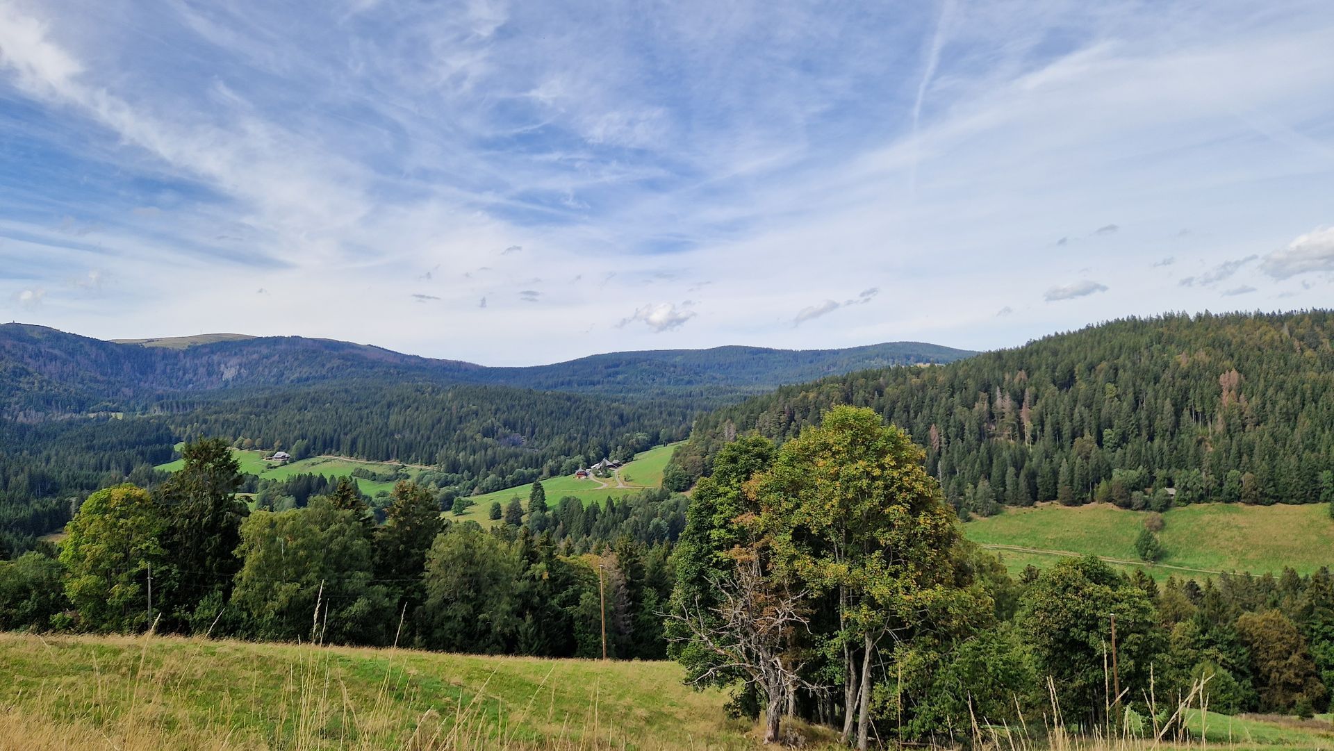 Es lässt sich gut auf den Feldberg laufen. Zwischendurch machen wir immer Pausen und das Wetter ist optimal, nicht zu heiß...wunderbar. Wir sind insgesamt drei Stunden unterwegs und als wir unten ankommen, gibt es eine Stärkung. Ob Michal das verträgt 🤨... ja es geht tatsächlich alles gut, er isst nur die Hälfte und das passt. Ist ja jetzt alles erstmal Test mit ohne Galle...😉